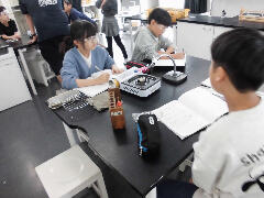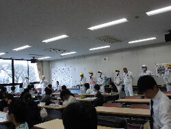動画を見て確認したり、校庭に設置されたコースを走行したりしました。