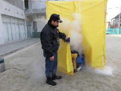 その後、理科室から出火したという想定で避難訓練を行いました。
