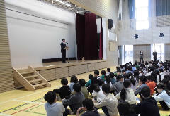 今日は、立川ダイスの田中志門選手にご来校いただき、