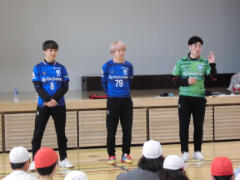 プロの選手のシュートの迫力に、子どもたちは驚いていました!!