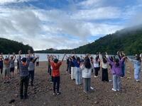 宿泊している八ヶ岳山荘の敷地内にある広場で朝の体操をしました。