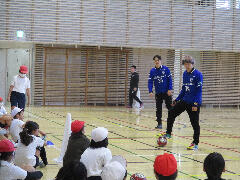 今日は、5年生を対象に、立川アスレティックFCのフットサル教室がありました。