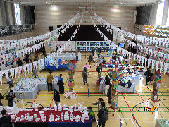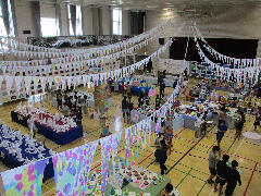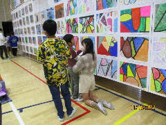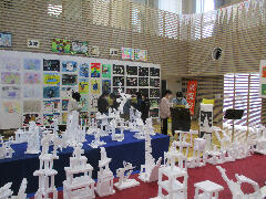 体育館に入ると全校の作品が展示されていて、