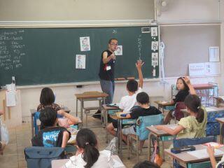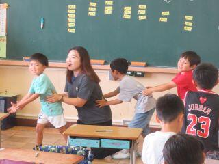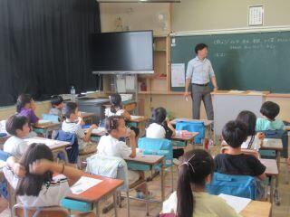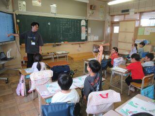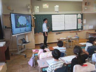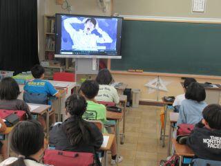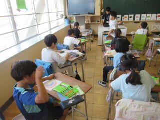 続いて3年生の外国語活動と4年生の算数の授業の様子です。3年生の活動は、ALTの先生が言った(英語で)ものを友達よりも先に指差すというものです。とても楽しそうでした。また4年生の算数の授業は、分数のたし算の仕方を学んでいました。子ども達はしっかり話を聞いて、しっかり理解できているようでした。
