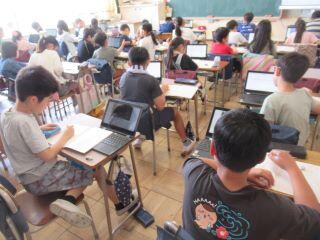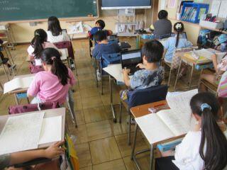 4年生の国語は「ことわざ」の学習が続いていました。タブレットや図書室の本などで調べながら学習を進めています。また5年生の国語の学習は「問題を解決するために話し合おう」という単元でした。話し合うテーマについても意見を出し合っていました。