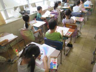 今日はとても暑い日だったので、昨日教室がとても暑かった4年生(4階の教室)は、家庭科室と理科室を教室として一日過ごしました。いつもと違った環境にワクワクしながら、楽しそうに学習に取り組んでいました。