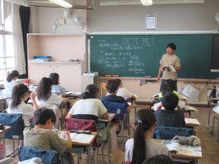 3年生の算数の授業では、教科書にある「はかりの目盛りの読み方」を問う問題に、子ども達は意欲的に取り組んでいました。また6年生の理科の授業では、月と太陽の動きを先生と児童が動きながら説明していました。わかりやすく楽しい授業でした!
