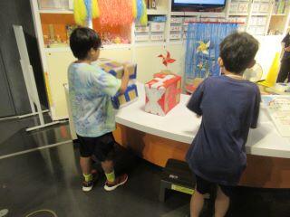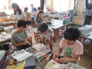 そして1年生は同じく空き箱を利用して「わくわくすごろく」を作っていました。いろいろな工夫が見られて、おもしろかったです!