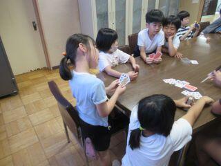 移動教室2日目のお風呂は、時間を長くとり、ゆっくり入ることができました。部屋でもカードゲームなどをしながら楽しく過ごせたようです。