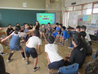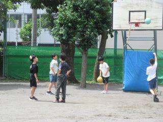 最後は6年生の体育の授業の様子です。チームの友達と協力し合って、とても楽しそうに活動していました。みんなが楽しめるようにルールも工夫してあるので、とても盛り上がっていました。