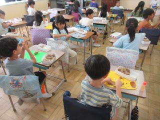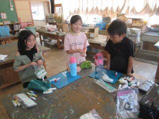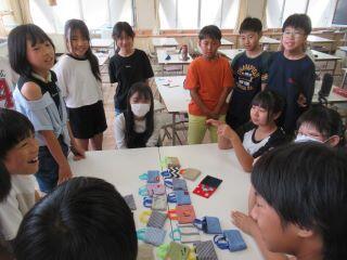 3年生の図工の授業では、作品づくりがだいたい終わって仕上げに取り掛かったり、友達に自分の作品を紹介したりしていました。また同じく3年生の体育の授業では、ボールを使ったネット型ゲームに取り組んでいました。チームの仲間とコミュニケーションを取りながら楽しそうに活動していました。
