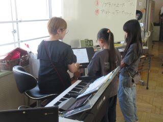 3年生は音楽の授業で、友達とグループになってリコーダーや歌の練習をしていました。みんな笑顔で楽しそうです。