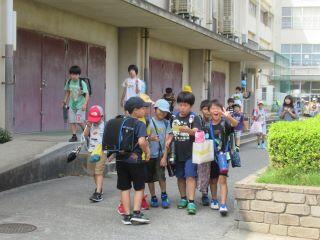 給食の片付けをして、清掃の時間です。暑い中でしたが、子ども達は友達と協力し合って一生懸命に働いていました。