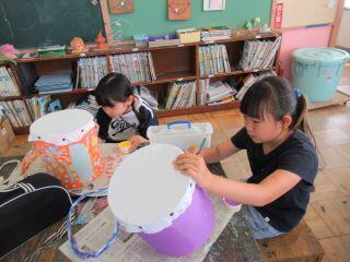 2年生の教室では、子ども達が生活科の授業で作ったおもちゃで、楽しそうに遊んでいる姿が見られました。