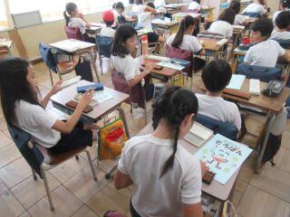 続いて1年生の国語の授業の様子です。自分の好きな教科を紹介する(話す)ために、まずは作文を書いていました。ついこの前ひらがなの学習を始めた子ども達が、もうこんなにしっかり文章を書けるようになったのかと感心しました。
