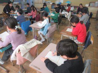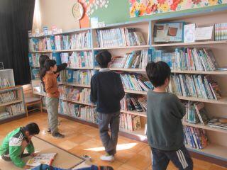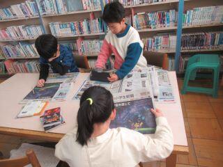 続いて3年生と4年生の図書室での様子です。3年生は小学生新聞を読んでいました。図書支援員さんからのクイズもあったようです。4年生も読みたい本を一生懸命に探し、熱心に読書をしていました。