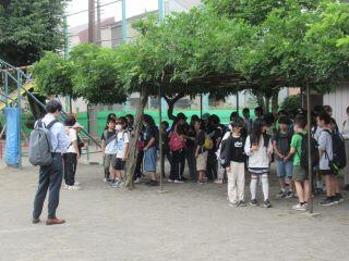 今日は防火シャッター・防火扉を使った避難訓練を行いました。1年生には事前に説明をして、落ち着いて安全に避難できるようにしました。訓練本番では、とても上手に避難ができていました。