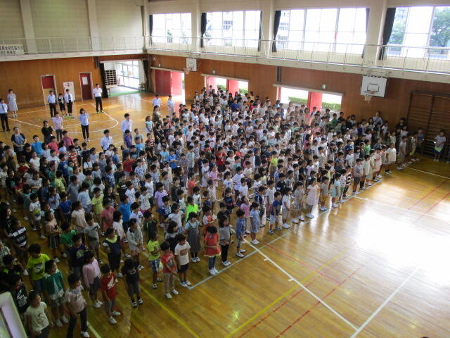 約450人の全校児童が一堂に並んだ様子は壮観です。