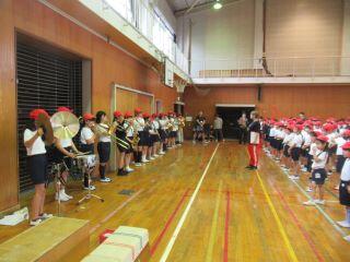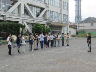 今朝の始業前の様子です。早く登校してきた子達が元気に遊んでいました。また、吹奏楽部の6年生は、明日の運動会の閉会式(優勝杯・準優勝杯授与)で演奏する曲の練習をしていました。