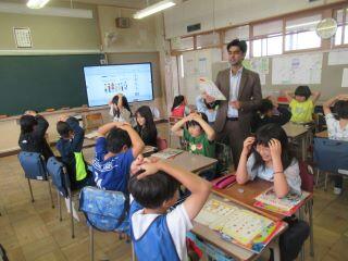 続いて3年生と4年生の様子です。3年生の算数の授業は「3桁の繰り下がりのあるひき算」でしたが、こちらもよく手が挙がっていました。4年生の理科の授業は「体のつくりと運動」です。教育実習生が用意した(作った)模型で、腕が曲がる仕組みについて理解を深めていました。