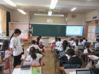 続いて6年生の外国語(英語)の授業と1年生の国語の授業の様子です。英語はゲームの要素を取り入れ、楽しく学んでいました。また1年生は、ていねいに平仮名の文字を書いていました。入学してから、たくさんの文字を覚えましたね。