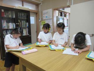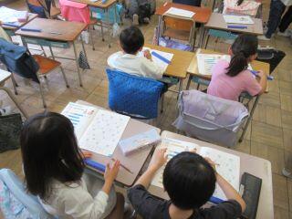 4年生の教室では書写に取り組んでいました。「校長先生、ぼく得意なんだ」「今日の課題の字、難しそう」などと言いながら、テキパキと準備を進め、集中して練習に取り組んでいました。