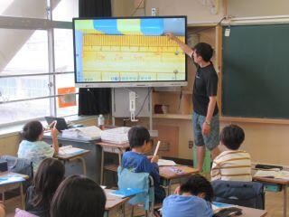 3年生の社会の授業では、みんなで楽しく地図記号を覚えていました。また4年生の算数の授業では、あまりのある2桁÷1桁のわり算を学習していました。みんなよくできていました!