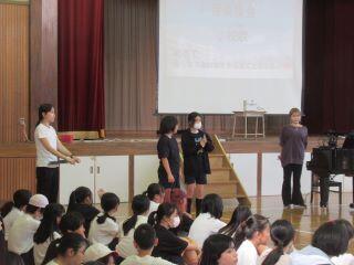 3年生は体育の授業でボール運動(ゲーム)を行うようです。チームに分かれて話し合いをしていました。4年生の音楽の授業では、先生の伴奏で歌ったり、指揮をしたりしていました。