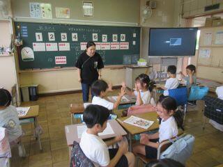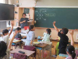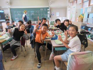 3年生の理科の授業では、観察のために育てていたアゲハチョウを校庭に放ちに来ていました。子ども達にとっては大きなイベントでした。また同じく3年生の国語の授業では、新出漢字を学んでいました。1字ずつ、どんなところで使う漢字なのか声を出し合っていました。
