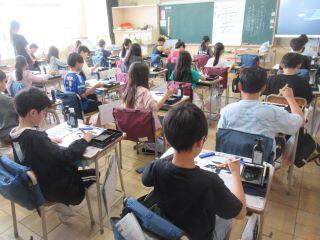 2年生はタブレットを使って、プレゼン画面を作っていました。「校長先生、これ見て!」の声に、画面を覗いて見るとなんとアニメーション機能も使っていました。すごいな2年生!