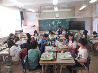 今日は3年生と5年生の給食の様子を紹介します。子ども達はいつも協力し合って配膳を行い、楽しそうに給食の時間を過ごしています。