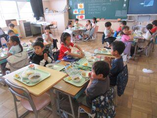 続いて給食の様子です。どの学年の子も、とても楽しそうに給食を食べていました。