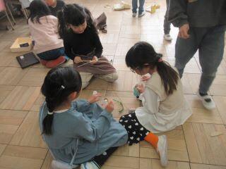 「難しい~」「○○さん、上手!」「上手くできた!!」など、感想を伝え合いながらも集中して取り組んでいました。