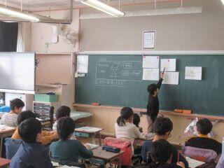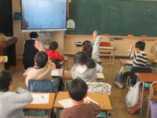 3年生の算数の授業では、教科書にある「はかりの目盛りの読み方」を問う問題に、子ども達は意欲的に取り組んでいました。また6年生の理科の授業では、月と太陽の動きを先生と児童が動きながら説明していました。わかりやすく楽しい授業でした!