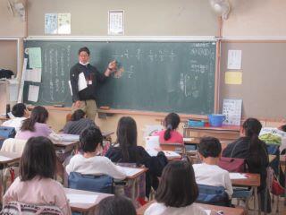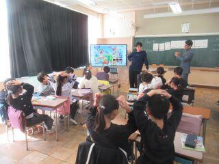 続いて3年生の外国語活動と4年生の算数の授業の様子です。3年生の活動は、ALTの先生が言った(英語で)ものを友達よりも先に指差すというものです。とても楽しそうでした。また4年生の算数の授業は、分数のたし算の仕方を学んでいました。子ども達はしっかり話を聞いて、しっかり理解できているようでした。