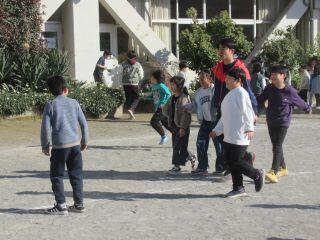 最後は休み時間の校庭遊びの様子です。今日は天気がよく、暖かく感じる日だったので、子ども達は元気に外遊びを楽しんでいました。
