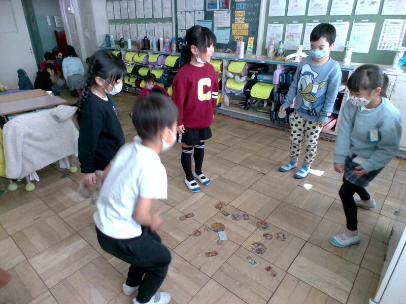 教室でできるものとして、学校には、だるま落とし、けん玉、お手玉、おはじき、めんこ、こま、坊主めくり、かるたなどがあります。