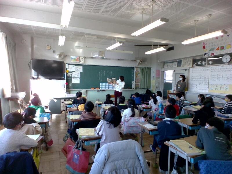 図書ボランティアさんに来ていただき、朝の読み聞かせをしていただきました。