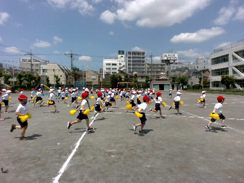 練習のあとは、子供たちが好きな「鬼ごっこ」を学年で楽しく行いました。