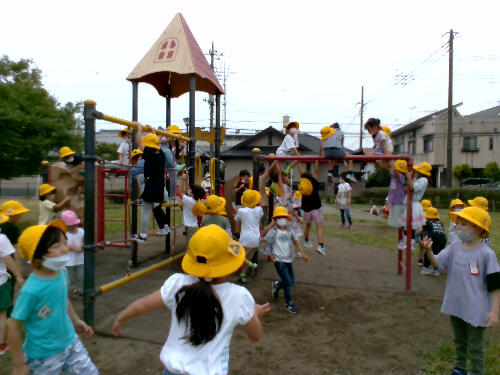 17日の金曜日に、学校近くの第三公園に行きました。曇り空でしたが、子供たちは大はしゃぎで遊んでいました。遊具で遊んだり、広い芝生でだるまさんが転んだをしたりとみんなで楽しく遊びました。「とても楽しかったよ!新しいともだちできた!」という声が聞こえてきました。
