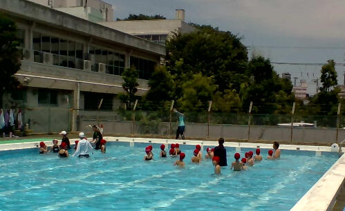 今週は2回めの水泳の授業を行いました。先週の酷暑の中とは違い、やや肌寒い中でしたが、子供達は元気におなじみの三小ダンスをプールの中で踊っていました。安全に楽しく活動しています。