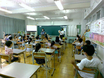 子ども達は、積極的にゲームに参加するなど、英語に興味をもって、授業に参加しています。