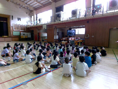 今年度も錦図書館の方にご来校いただき、図書館の利用方法などについて、オリエンテーションを行っていただきました。大きな絵本の読み聞かせなどもしていただき、楽しく過ごすことができました。図書館より、案内などをいただきました。ご家庭でご活用ください。