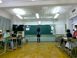 実際に中学校の授業体験をし、生徒会役員の三中生から、委員会や部活の動画を見せてもらいました。