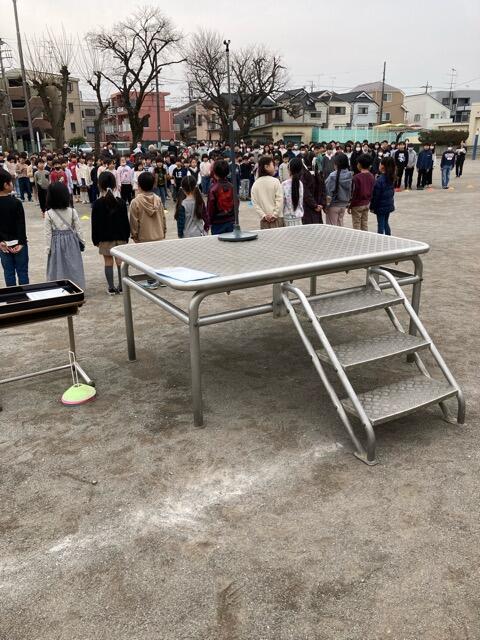 これから、クラスごとに分かれて、班で発表します。元気です。