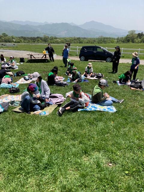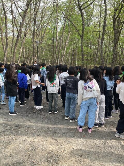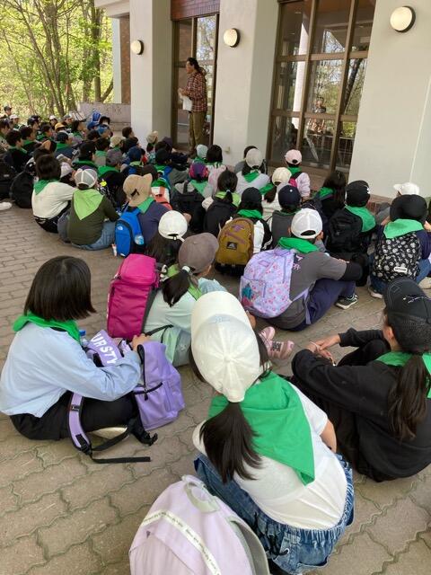 これから、クラスごとに分かれて、班で発表します。元気です。