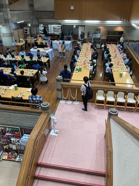 たくさんの人たちと触れ合ってほしいと、集会委員会が企画してくれました。いろいろな子供たちから具材のカードを集めて回ります。