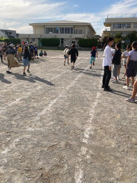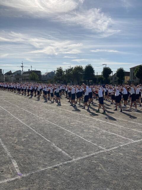 朝から雨予報でしたが、近くの駐車場で朝の会もできました。