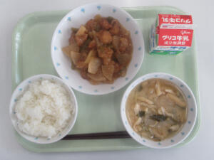 チキンカレーライス、大根のコロコロサラダ、牛乳