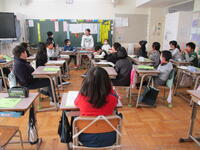 4年生の外国語の授業では、ALTとアルファベットのカードを使った英単語の学習でした。3年生は、学級会でクラス遊びについて話し合っていました。